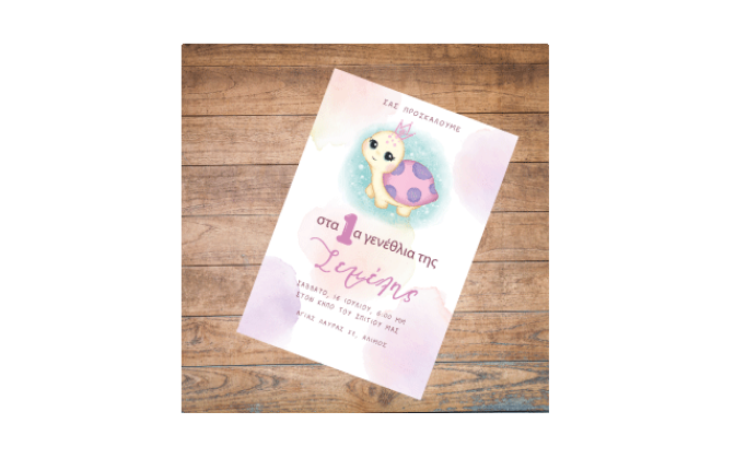 1st Birthday Turtle Invitation, 12x17cm - Digital File
